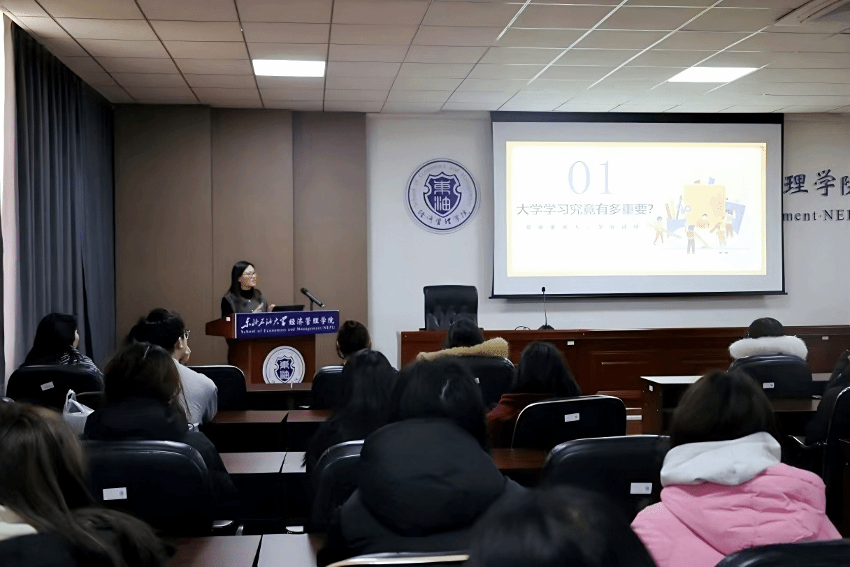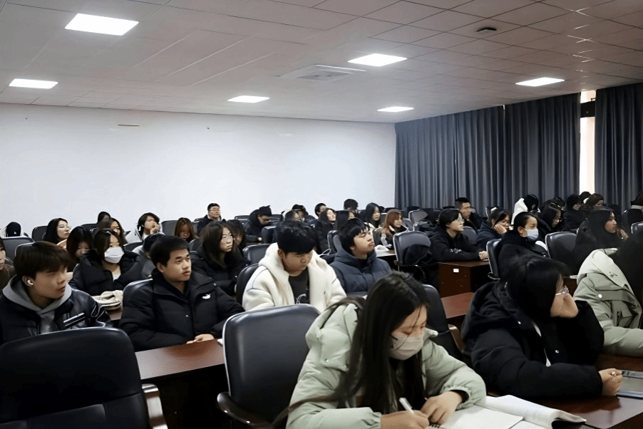 周钰涵学长以自身经历鼓励大家积极参与社团组织、学科竞赛和创新创业活动。他讲述了在团队协作中如何发挥自己的优势,如何在挫折中汲取经验,以及这些经历对个人综合能力提升带来的巨大帮助,让同学们深刻体会到校园生活中学习成绩的重要性,但又不能仅局限于课堂学习。大学四年里,同学们还应该注重培养自己的批判性思维、创新能力、团队协作能力等综合素质,这些对于未来的个人发展至关重要。