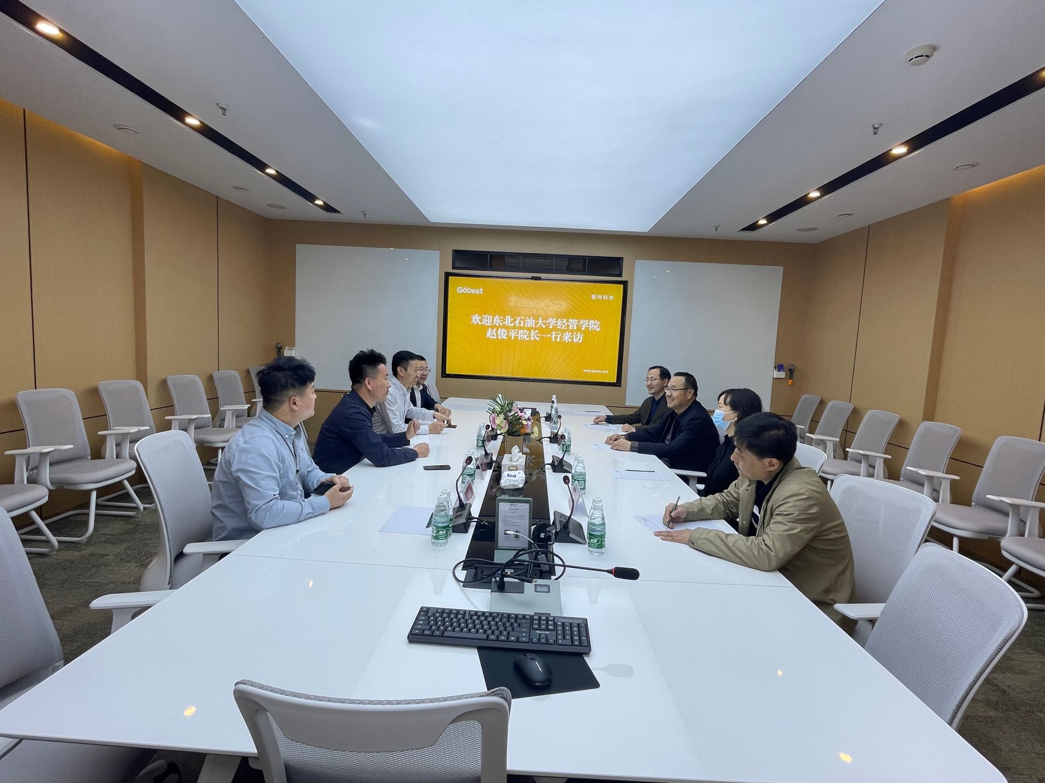 随后,赵俊平一行到达思特科技进行参观,并进行了交流座谈。本次座谈会参会人员包括2138cn太阳集团城院长赵俊平、副院长张建华、MBA中心主任王赵亮、营销与旅游系主任孙晓春、经济与贸易系副主任董金涛与思特科技副总经理赵民强等。
