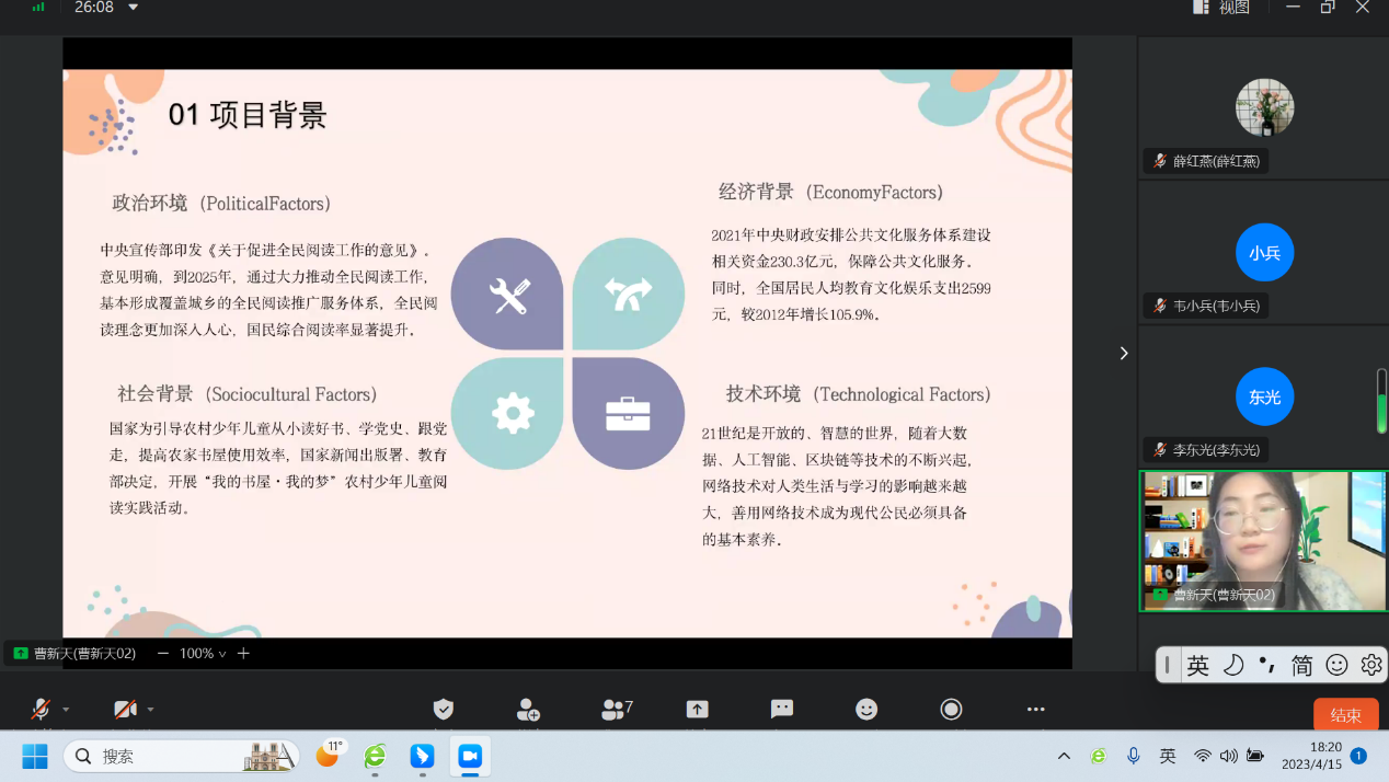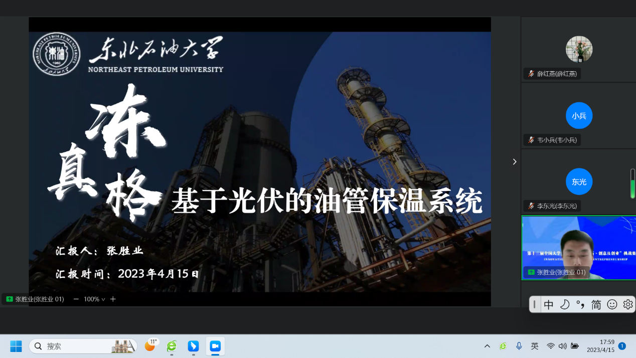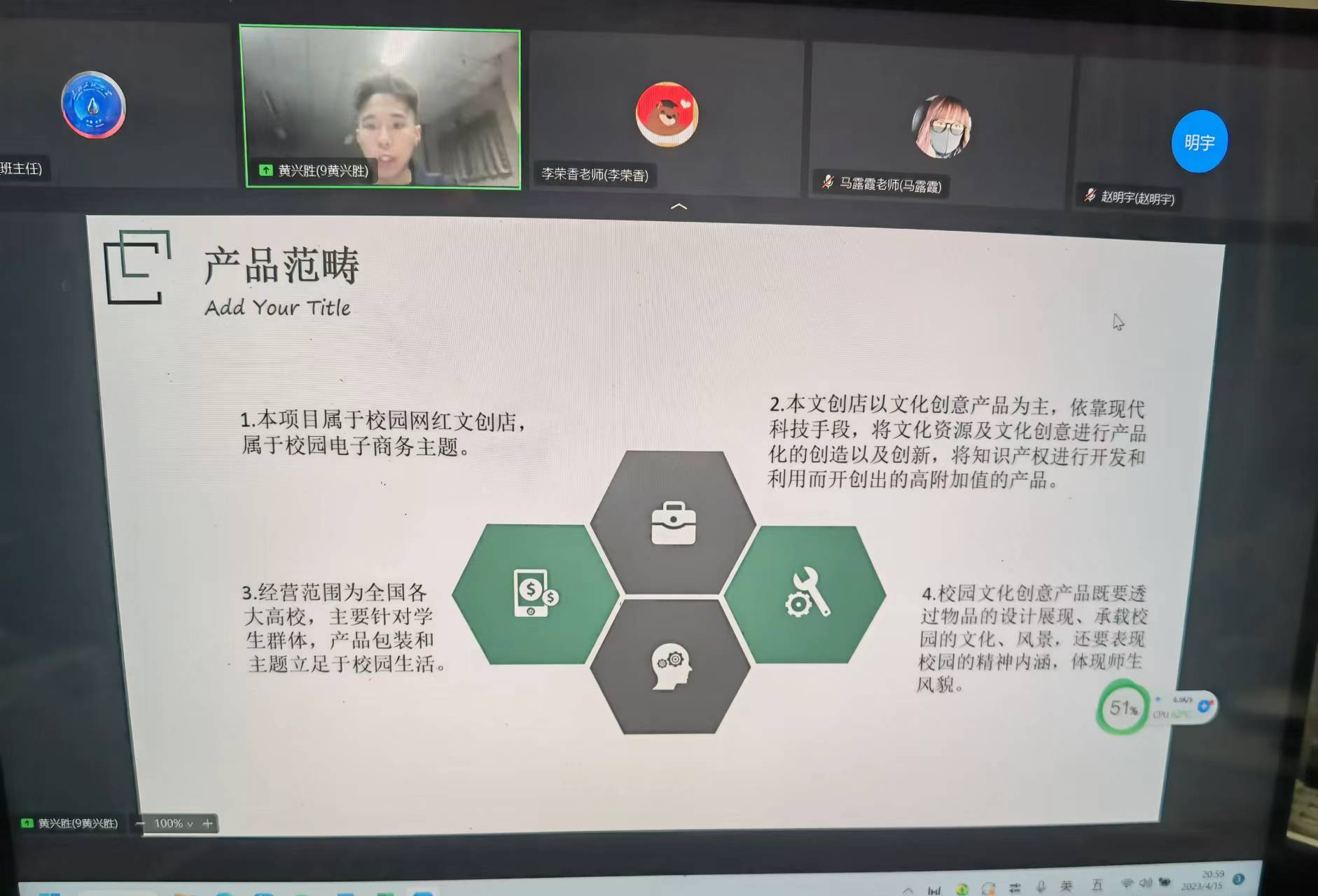 本次三创赛校级,采用线上钉钉会议方式举行,选手们在8分钟内结合PPT等其他多媒体材料对自己的创业计划进行展示,随即进入评委提问环节,提问时间为7分钟。为保证比赛的公平、专业性,成立了以经济管学院赵俊平院长带队的纪检组,教学院长王艳秋带队的仲裁组。并特邀请经管院教师、秦皇岛分院电子商务教师李荣香副教授等校内评委,同时邀请大庆市商务局电子商务科刘少武科长、北京盈信信息科技有限公司、国投盈信秦皇岛科技有限公司董事长兼总经理,沈阳泽加软件科技有限公司总经理,中石油黑龙江省销售公司高级主管等企业专家作为校外评委。初赛和复赛中,评委的专业提问和对参赛项目的建设性点评,给各参赛项目提供了可行性的指导。比赛后学生们普遍反应本次比赛评委点评专业,收获非常大,为项目实施落地提供了有益的参考。