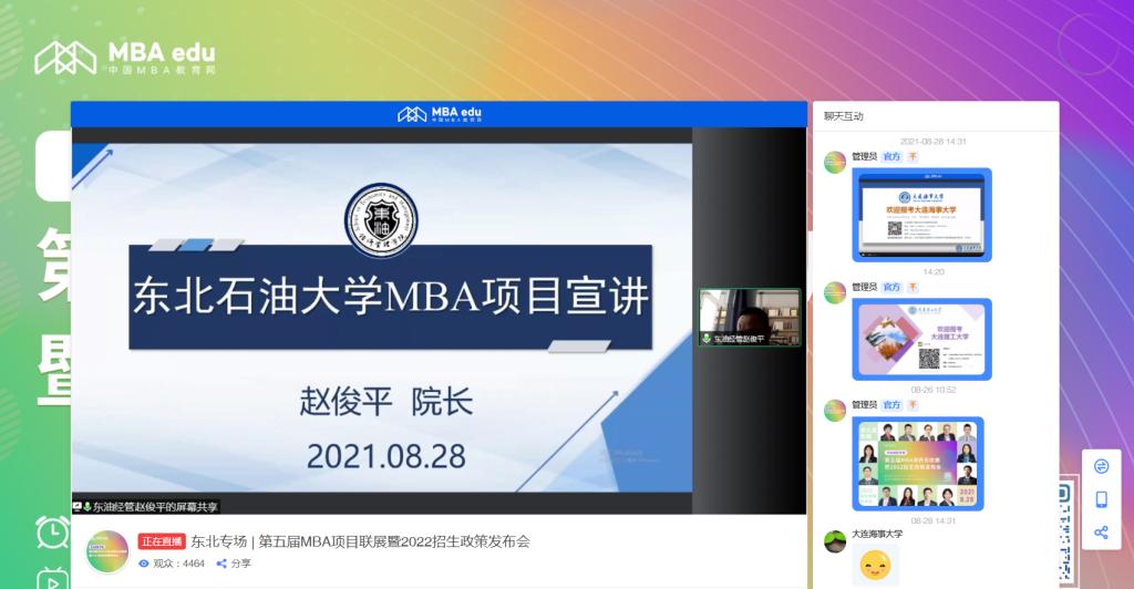 为帮助全国考生与院校搭建透明、互信的交流平台,及时了解MBA项目院校官方资讯,快速选择理想院校,2021年8月28日14:00由中国MBA教育网在线举办的“第五届MBA项目联展暨2022招生政策发布会(东北地区专场)”成功召开。2138cn太阳集团城院长赵俊平应邀参会并作宣讲。