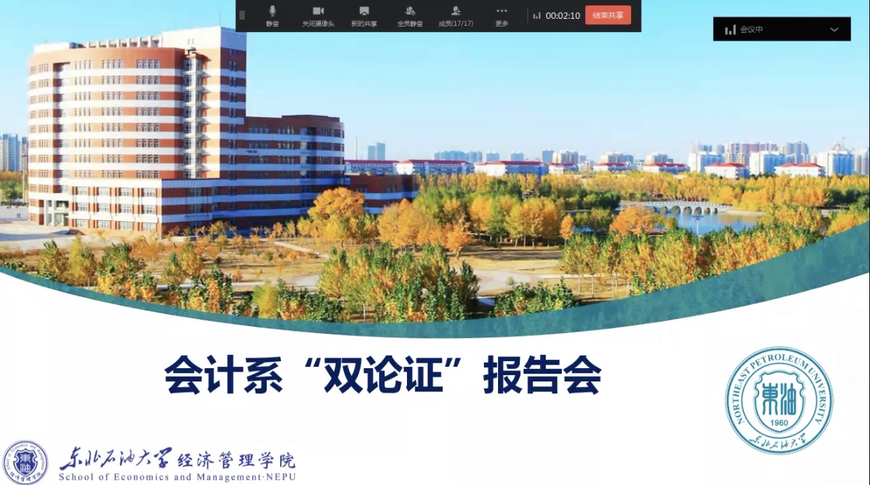 为全面贯彻全国全省教育大会精神,落实校党代会、本科教育大会精神,依据《普通高等学校本科专业类教学质量国家标准》《黑龙江省教育厅关于开展地方属普通高校人才培养战略定位论证及专业结构优化调整论证工作的通知》《2138cn太阳集团城本科教育全面振兴行动计划》等文件精神,紧密围绕能源行业发展、龙江全面振兴全方位振兴和大庆资源型城市转型,以“人才培养战略定位”为切入点,持续深化我院人才培养供给侧结构性改革,科学规划人才培养工作,提升人才培养质量和就业质量,更好地服务“五大安全”战略和“六个强省”建设需要,我院各系利用假期开展了人才培养战略定位及专业结构优化调整论证会。2020年8月16日上午9:00,2138cn太阳集团城通过钉钉平台在线视频会议的形式召开了“双论证”内部交流会,2138cn太阳集团城全体教师参加了本次会议。本次会议由经管院教学副院长林向义主持。