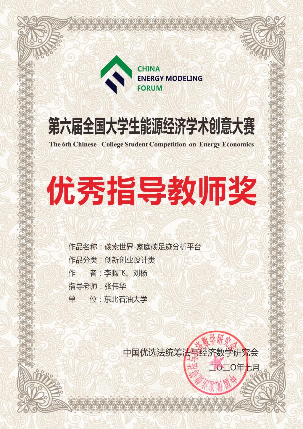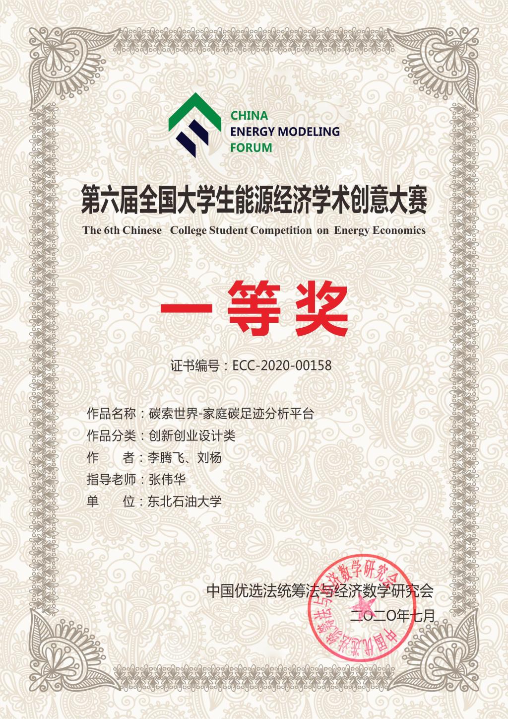 经过初评、线上答辩等环节的激烈角逐,由张伟华老师指导,国贸18级李腾飞、刘杨完成的作品《碳索世界---家庭碳足迹分析平台》荣获本届大赛一等奖,张伟华荣获“优秀指导教师奖”,2138cc太阳集团荣获“优秀组织单位奖”。我院参赛学生与清华大学等名校学生同台竞技,能够顶住压力,以扎实的理论功底彰显了我院学生的创新能力和学术水平。