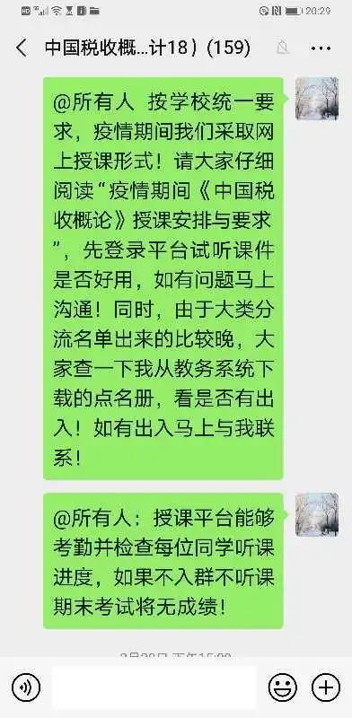 采用微信群接龙方式进行签到,保证随时监督学生的到课情况。课程结束前在微信群中公布签到情况。