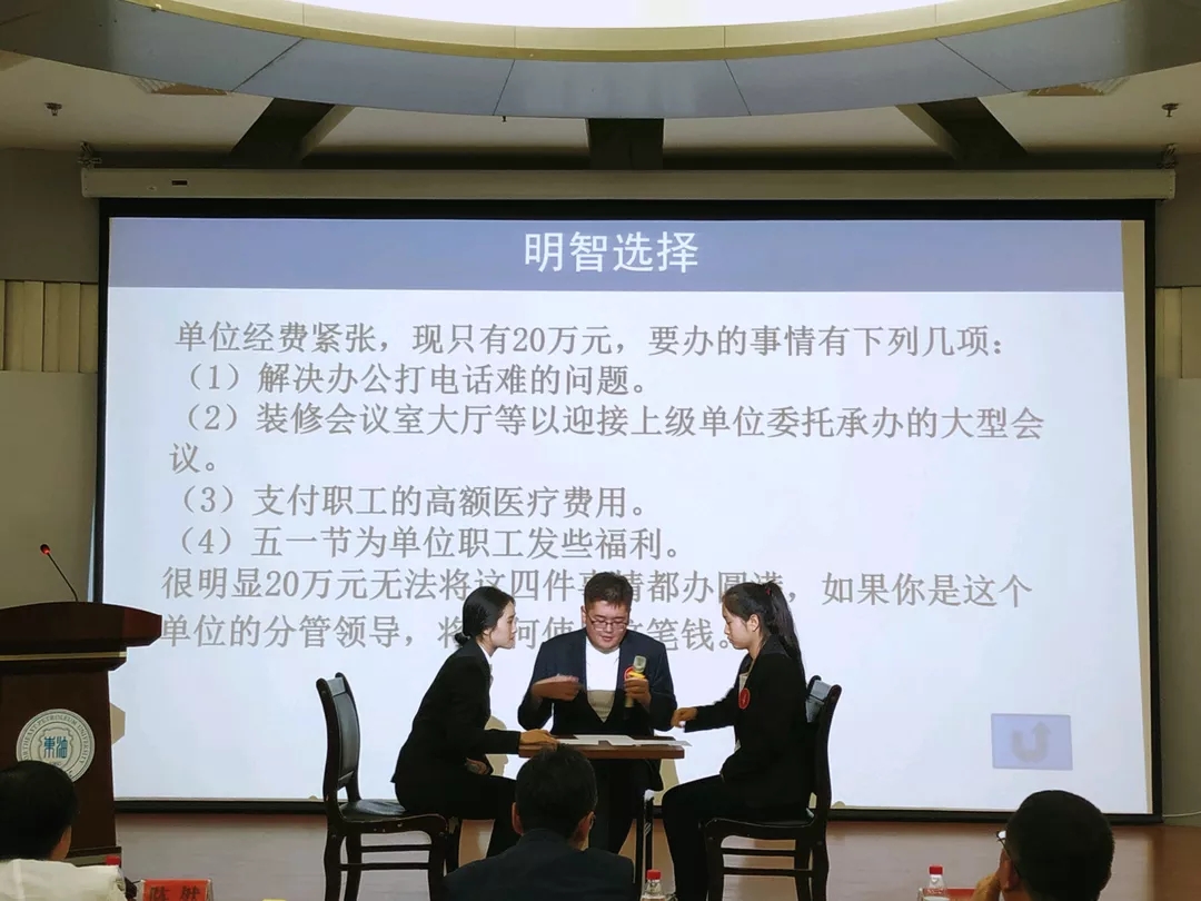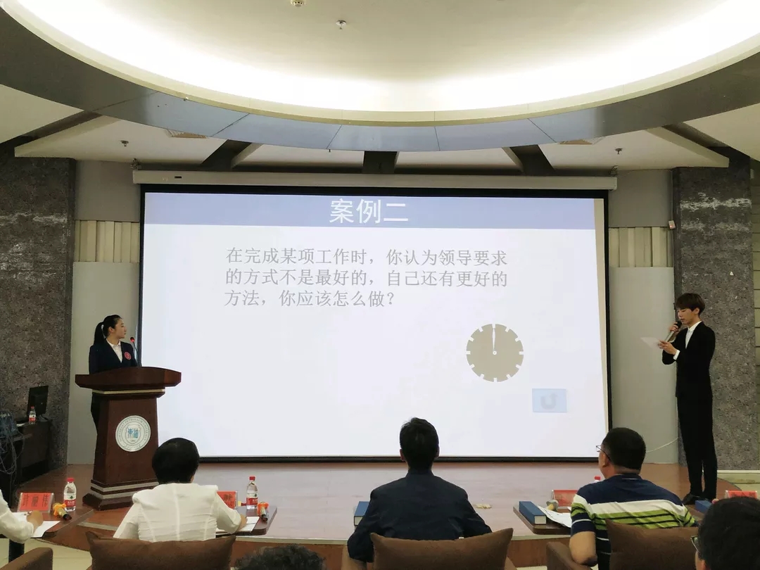 本次大赛共有来自7个学院的52名选手报名参赛,经过初赛与复赛的层层选拔,共有6名选手进入决赛。决赛通过“竞聘演说”、“案例分析”、“无领导小组讨论”三个环节展开激烈角逐。“竞聘演说”环节中,选手们通过PPT和个人简历为媒介表达自己的求职意愿, “案例分析”环节中,选手们现场抽取案例并在规定时间内进行分析,前两环节结束后,得分较高的三名选手进入最终“无领导小组讨论”环节进行比拼,最终,商管187班宋明欣摘得本次大赛桂冠,国贸171班邱胜楠、会计173班孙华秋获得二等奖,经济181姜超、研17-11班陈阳、研18-2班韩嘉琦获得三等奖。
