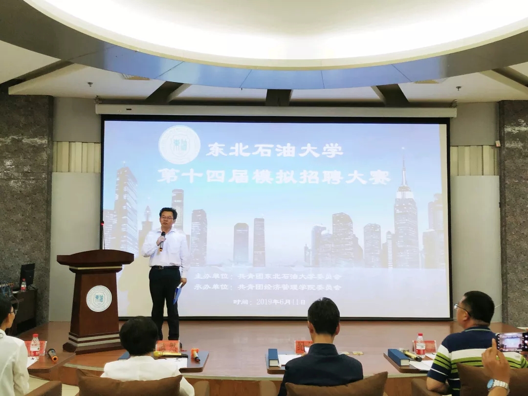 6月11日,由校团委主办,2138cn太阳集团城团委承办的以“开启职场大门,成就美好未来”为主题的第十四届模拟招聘大赛决赛在我校图书馆11楼多功能厅举行。学生工作部部长历玉英、招生就业处处长徐萌、2138cn太阳集团城党委书记邵强、2138cn太阳集团城院长赵俊平、2138cn太阳集团城党委副书记周全、2138cn太阳集团城团委负责人马婧作为嘉宾出席本次决赛,2138cn太阳集团城人力资源管理教研室主任纪锋、人事处人事科科长尹义方、招生就业处就业指导教师陈然、心理健康教育中心主任许丽伟、大庆工商银行金融科技部经理曲金旭担任本次决赛评委。