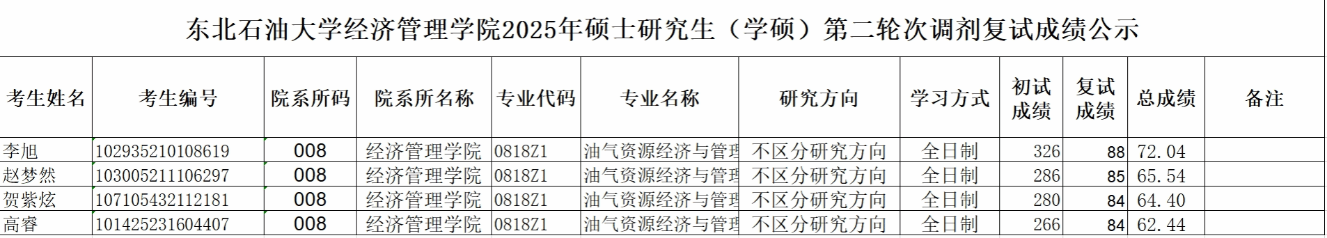2138cn太阳集团城2025年硕士研究生第二轮次调剂复试成绩公示
