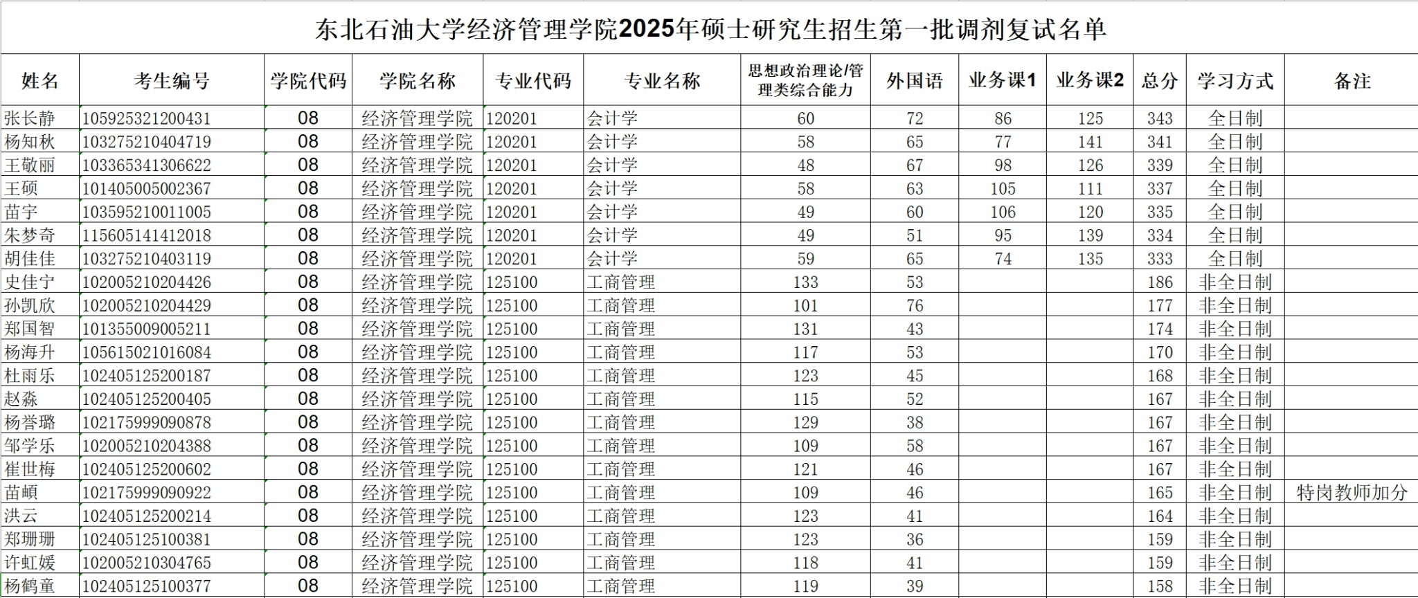 2138cc太阳集团2025年硕士研究生招生调剂复试名单公示