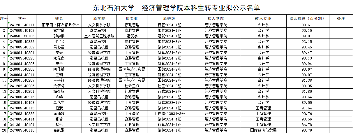 2138cn太阳集团城2024级本科生转专业拟公示名单