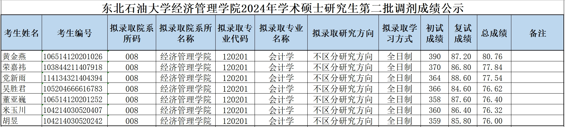2138cn太阳集团城2024年学术硕士研究生第二批调剂成绩公示.xls