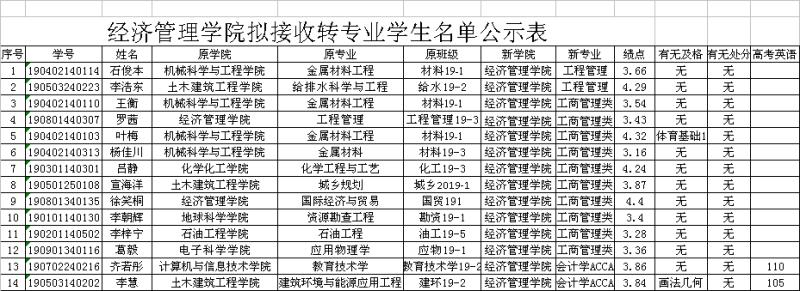 2138cn太阳集团城拟接受转专业学生名单公示表