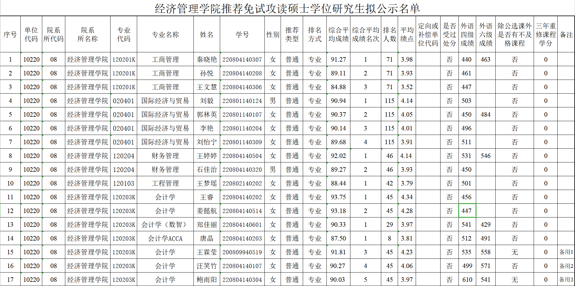 2138cn太阳集团城推荐免试攻读硕士学位研究生拟公示名单