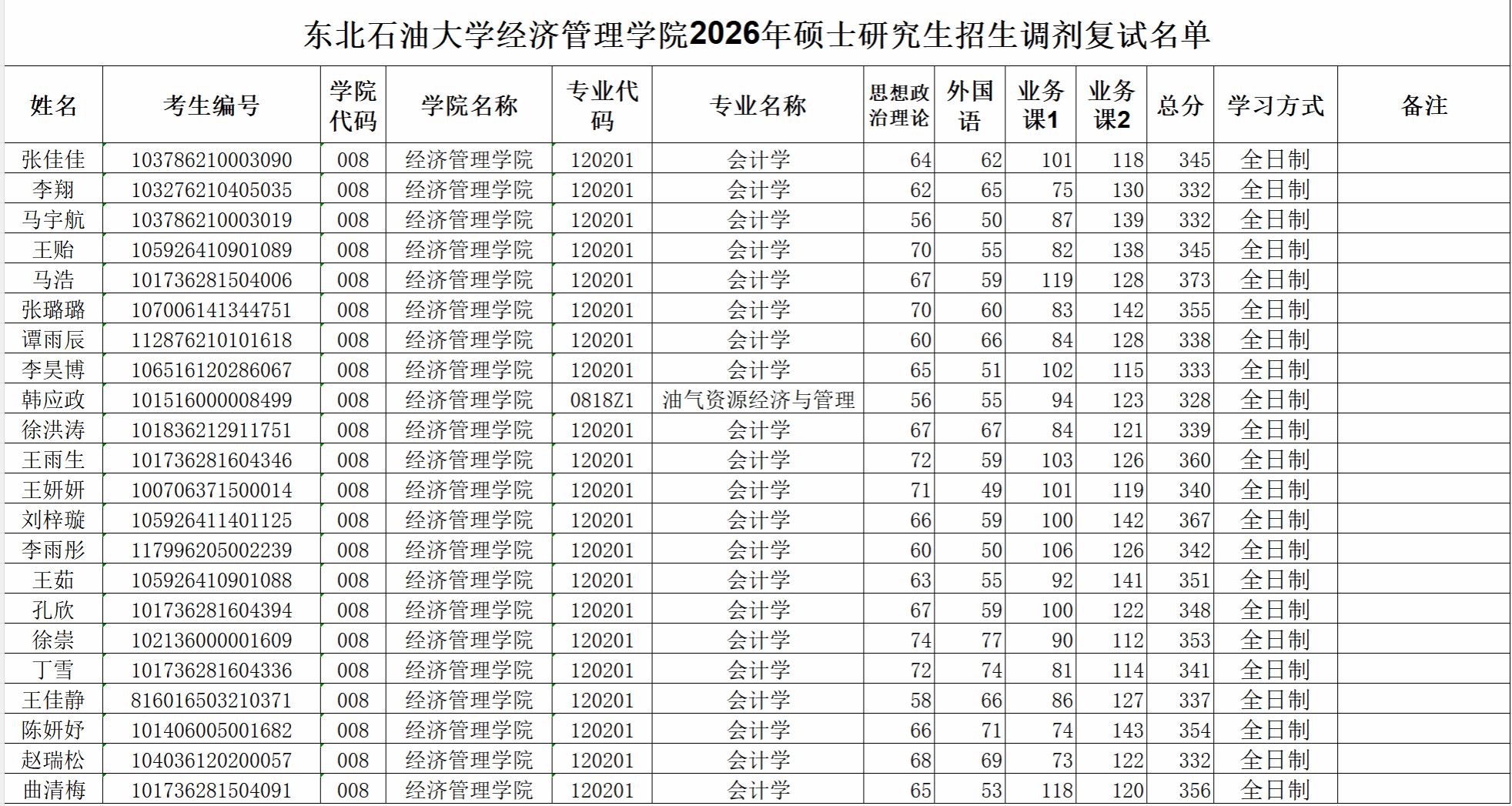 2138cn太阳集团城2026年硕士研究生招生调剂复试名单
