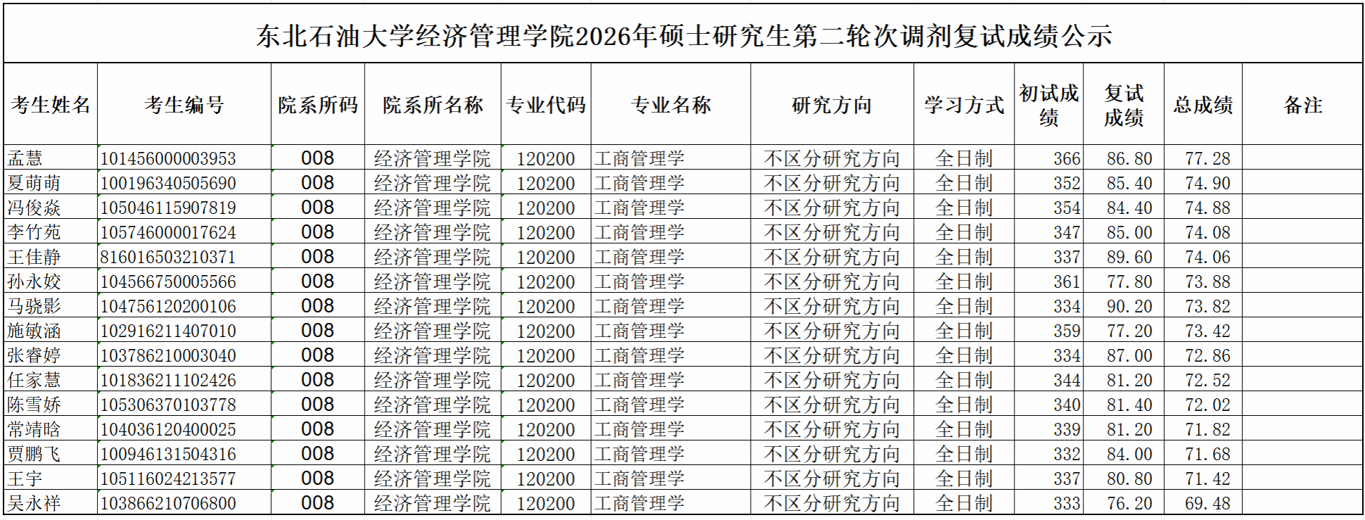 2138cn太阳集团城2026年硕士研究生第二轮次调剂复试成绩公示