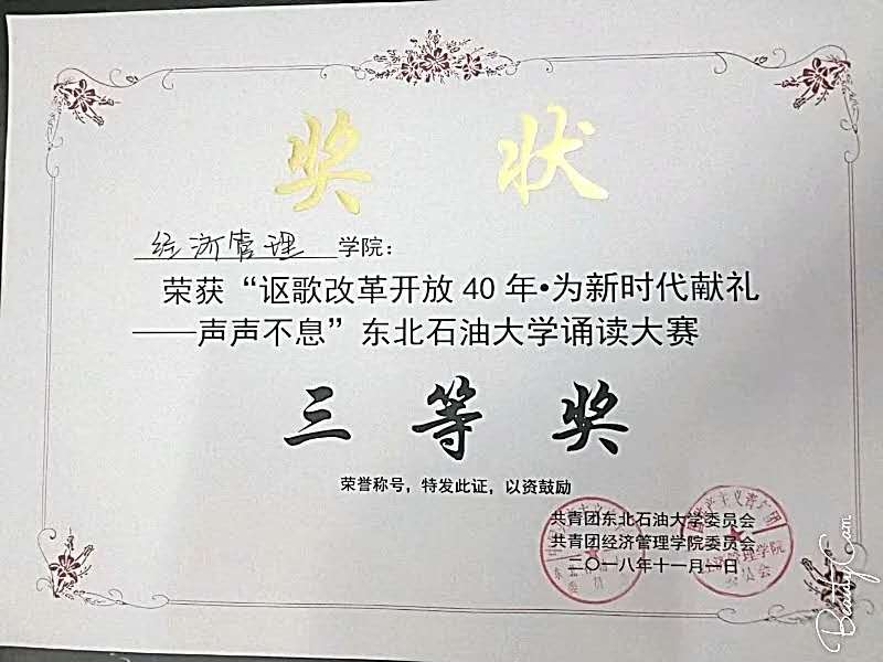 经典诵读比赛校级三等奖
