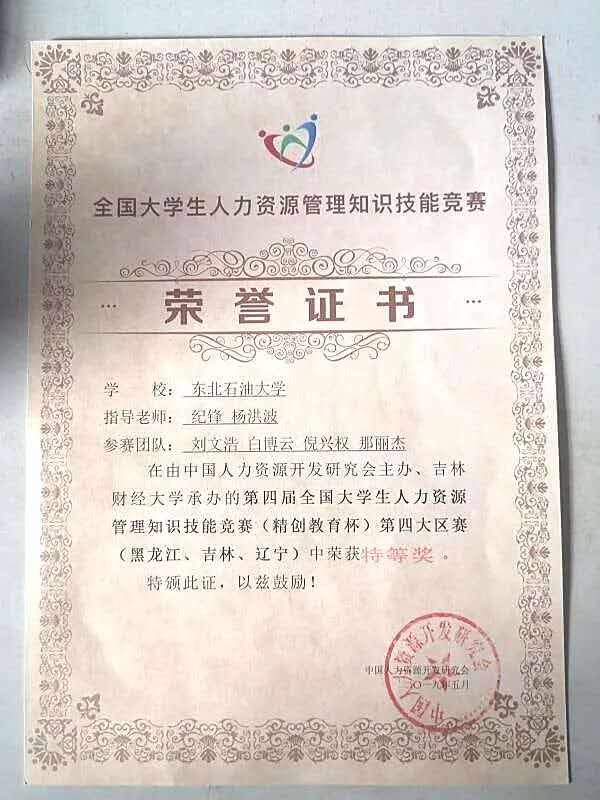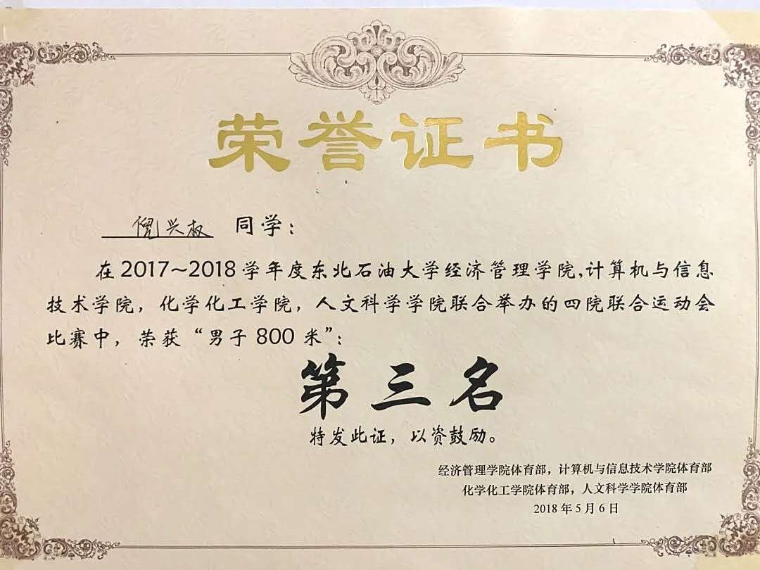 【荣 誉】校级三好学生