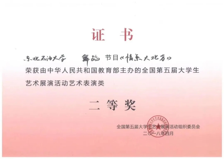 全国第五届大学生艺术展演活动艺术表演类二等奖
